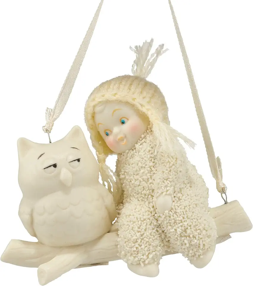 Snowbabies Wise Advice Owl Ornament (2.6 inches, white, 0.3 lbs). Hanging tree ornament with ribbon. Sweet holiday keepsake. 1-year warranty.